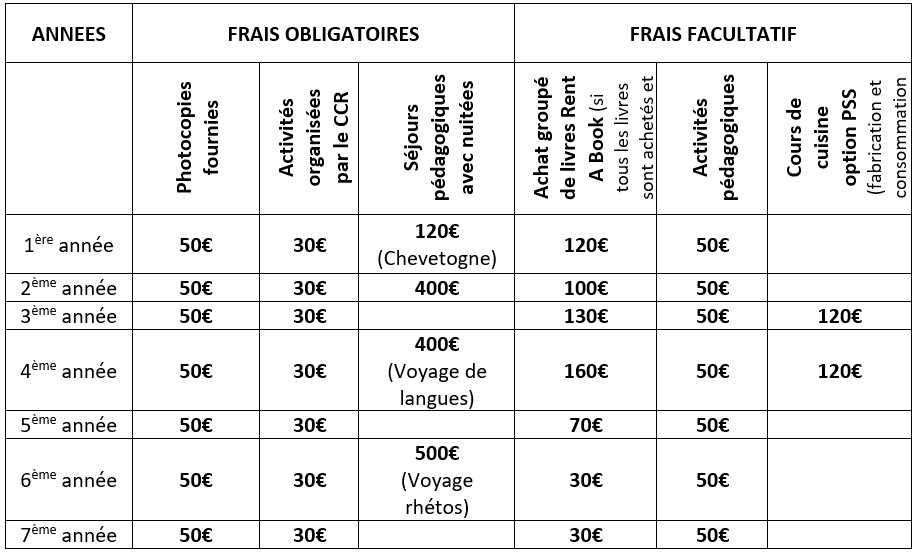 Au début de l’année scolaire ou au moment de l’inscription de votre enfant, une estimation des frais scolaires vous est fournie. En voici le détail :